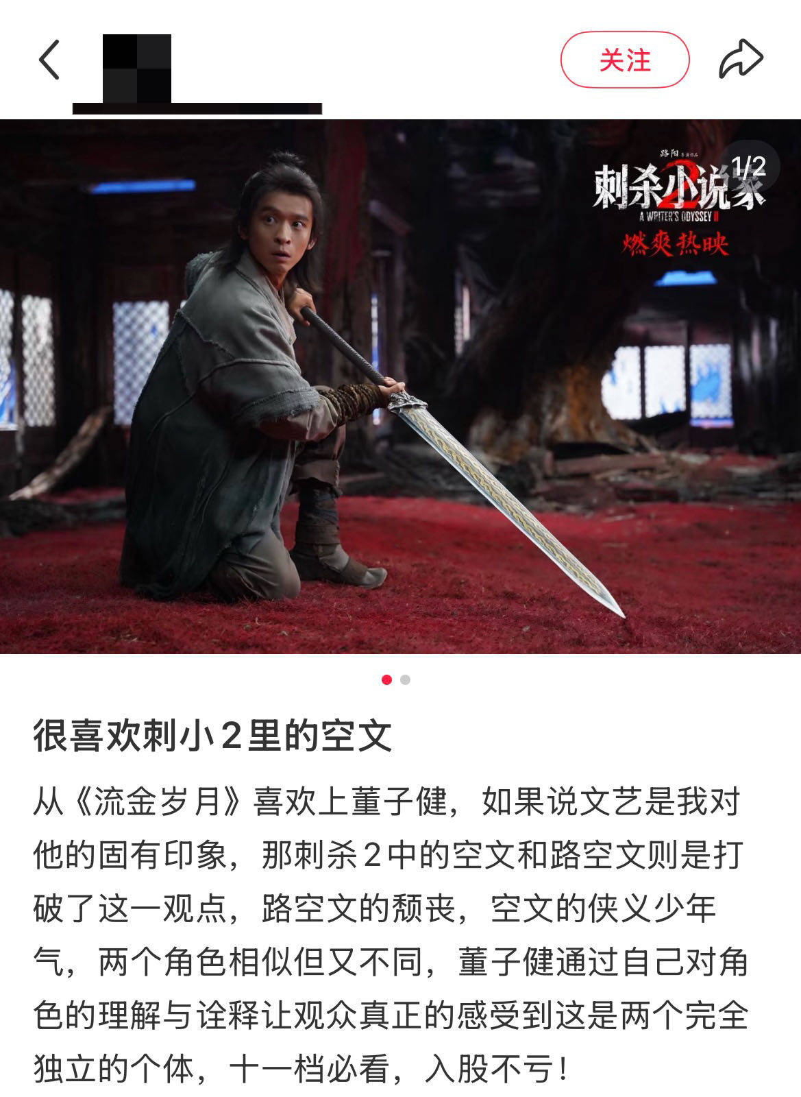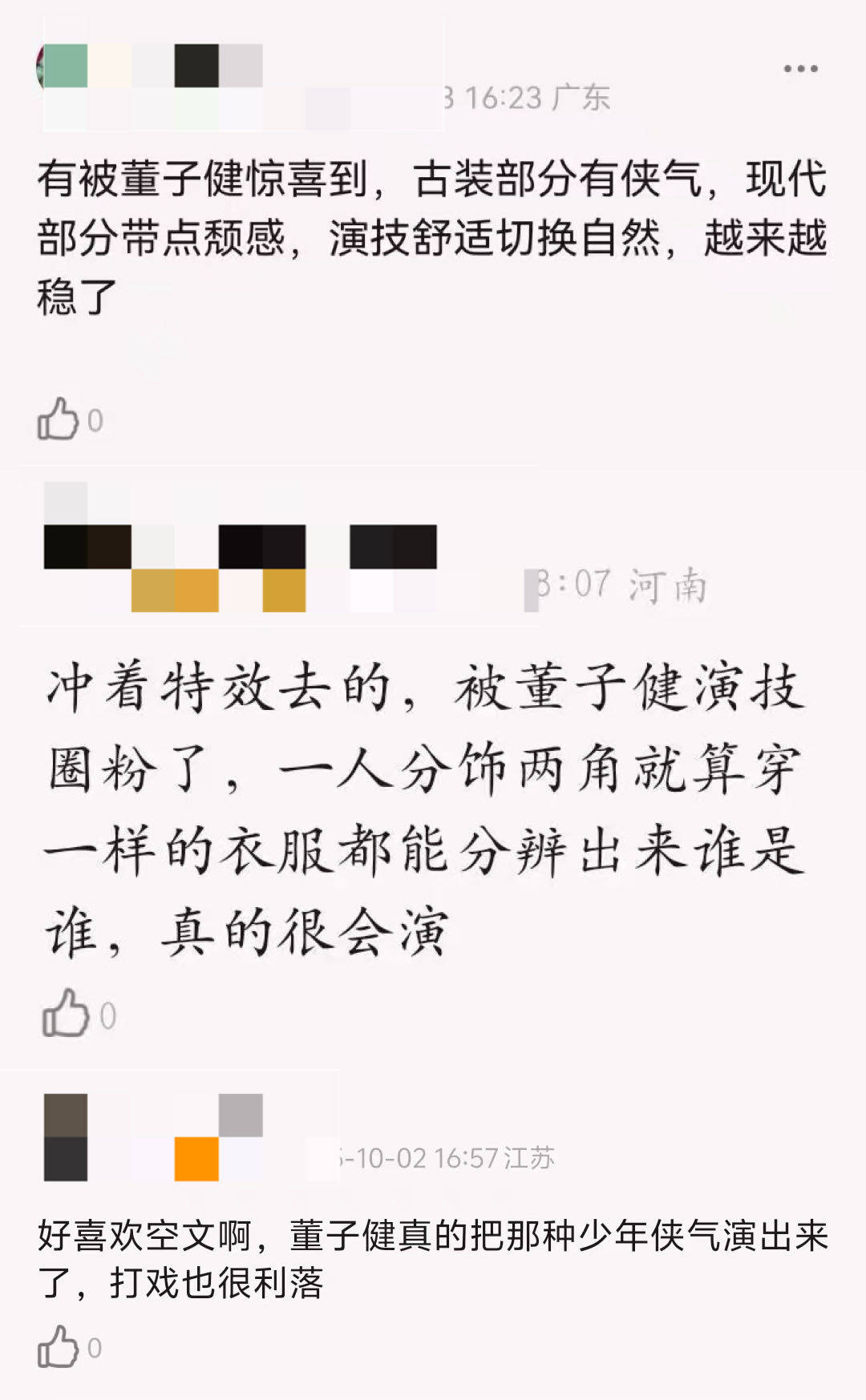 演员上来说,我真的好爱董子健,你怎么这么会演啊,真的完美的符合我想象中路空文和空文的样子。里空文出场的时候,我只有心疼,我那经历了网暴被抢走梦想的小说家,千万不要被打败。空文出场我内心直接哇偶,我那清爽干净不油腻的侠义少年,如第一部一样,还是正气十足!